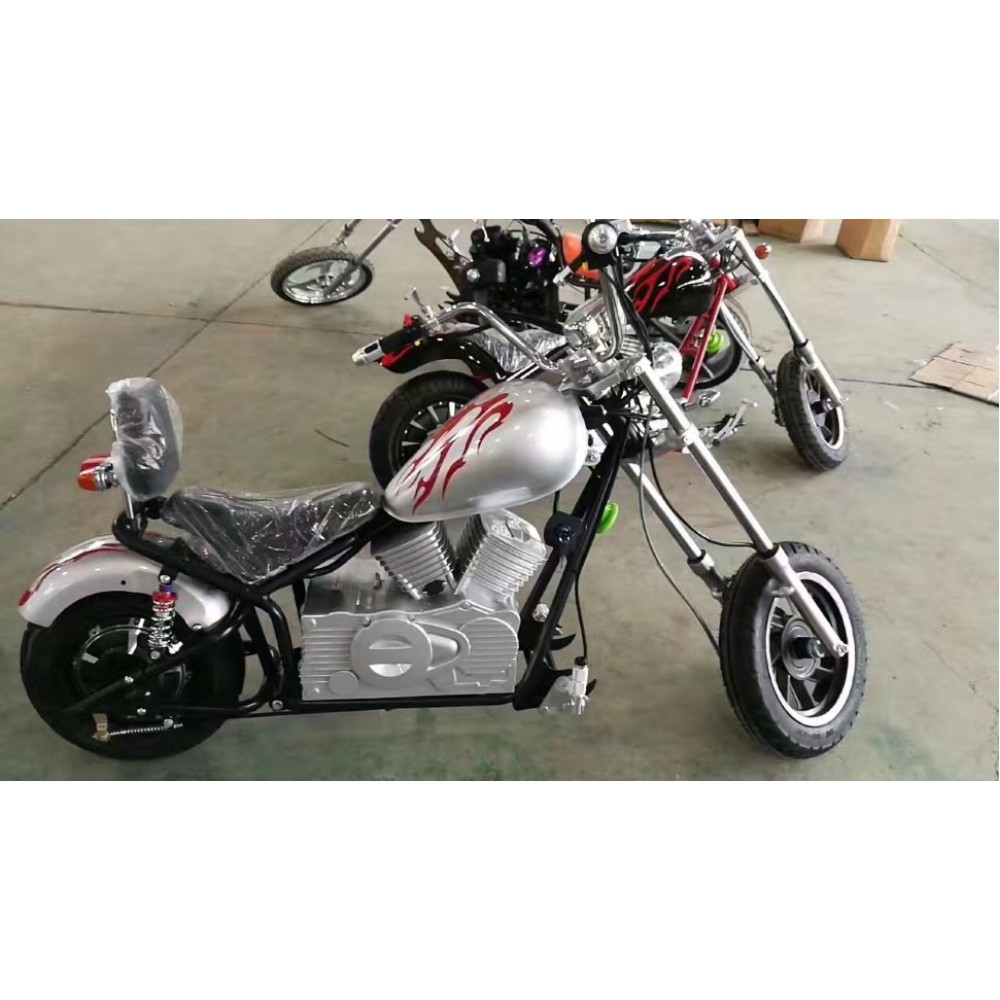 GreenCamel Chopper C100 Серебристый – это мощный, впечатляющий и очень красивый электромотоцикл для подростков в возрасте от двенадцати лет. Дизайн машины вдохновлён мотоциклами стиля Chopper – они считаются невероятно стильными и эффектными. При помощи данного электромотоцикла, вы легко сможете оторвать своё чадо от компьютера или телефона.