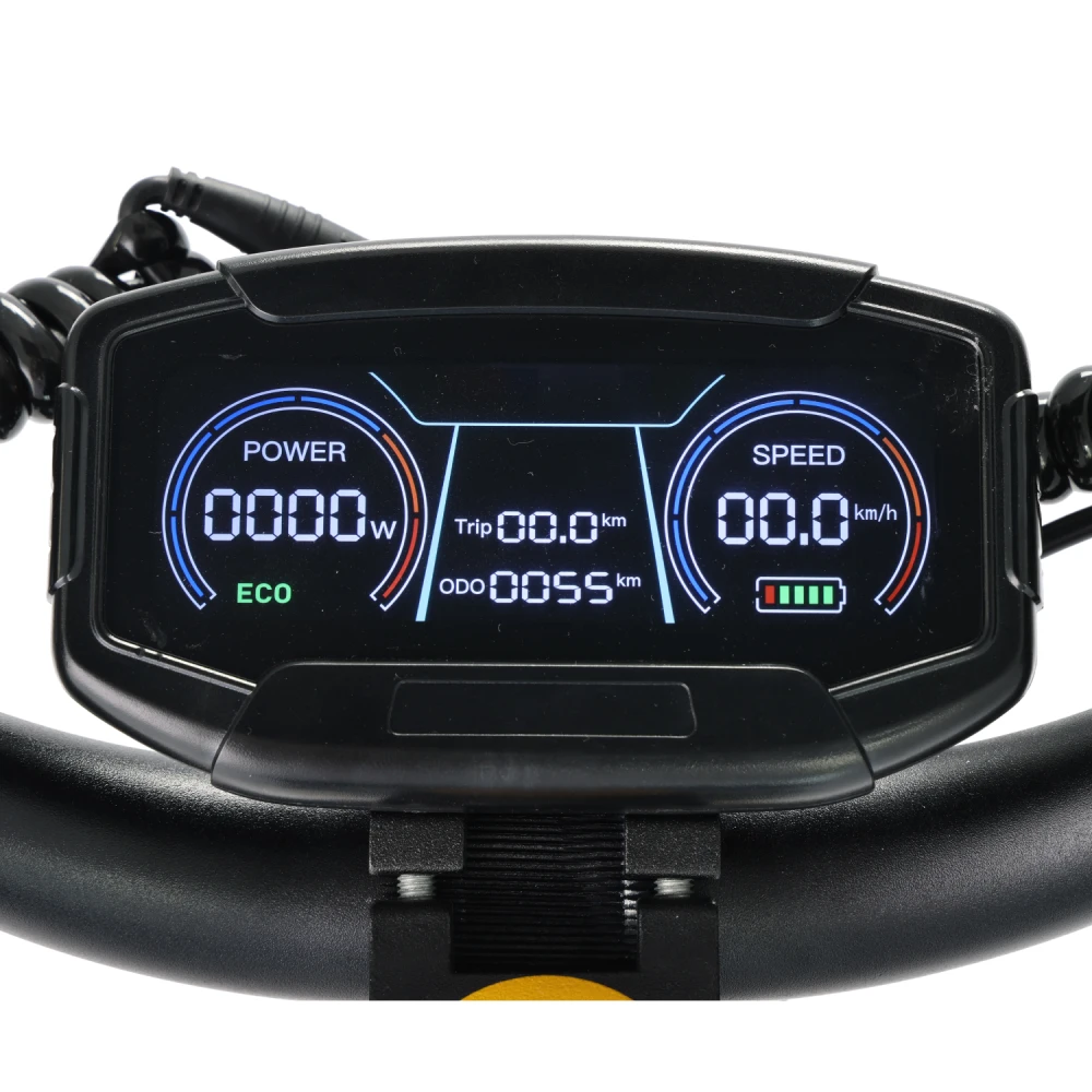 Самокат оснащен аккумулятором емкостью 20,8Ah, позволяющим развивать максимальную скорость до 75 км/ч и проезжать до 70 км на одном заряде.