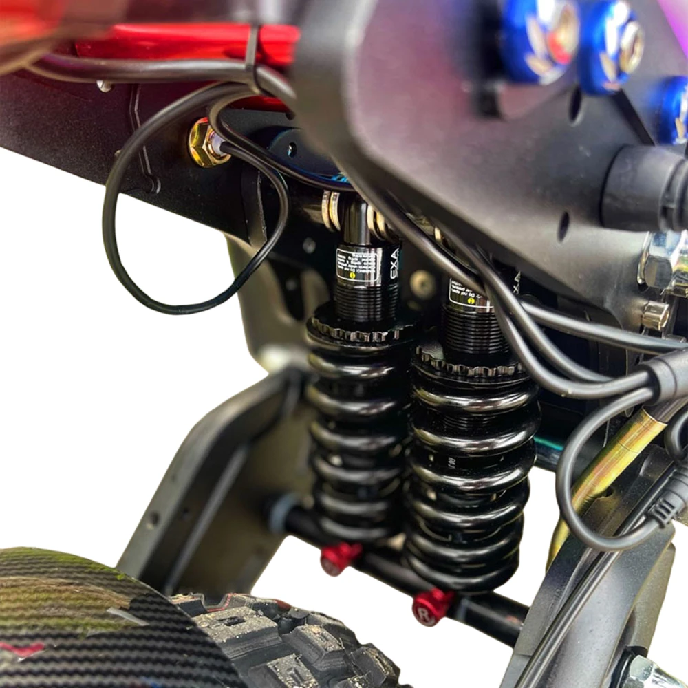 Полный привод с двумя моторами номиналом 250 Вт (пик 6000 Вт) обеспечивает разгон до 90 км/ч и уверенный подъем в горку под 150 кг, на неровностях 12" пневмоколеса с амортизацией гасят вибрации; литий-ионный аккумулятор 60V 50Ah дает реальный пробег 60-80 км в eco-режиме, 40-60 км в sport при 70-80 кг. Гидравлические дисковые тормоза останавливают эффективно даже на мокром; режимы Eco/Drive/Sport балансируют скорость/запас (Eco — 40 км/ч, 100+ км; Sport — 90 км/ч, 40 км), энергоэффективность высока за счет контроллера 60V 50A. Зарядка стандартная 7 часов, быстрой нет.​