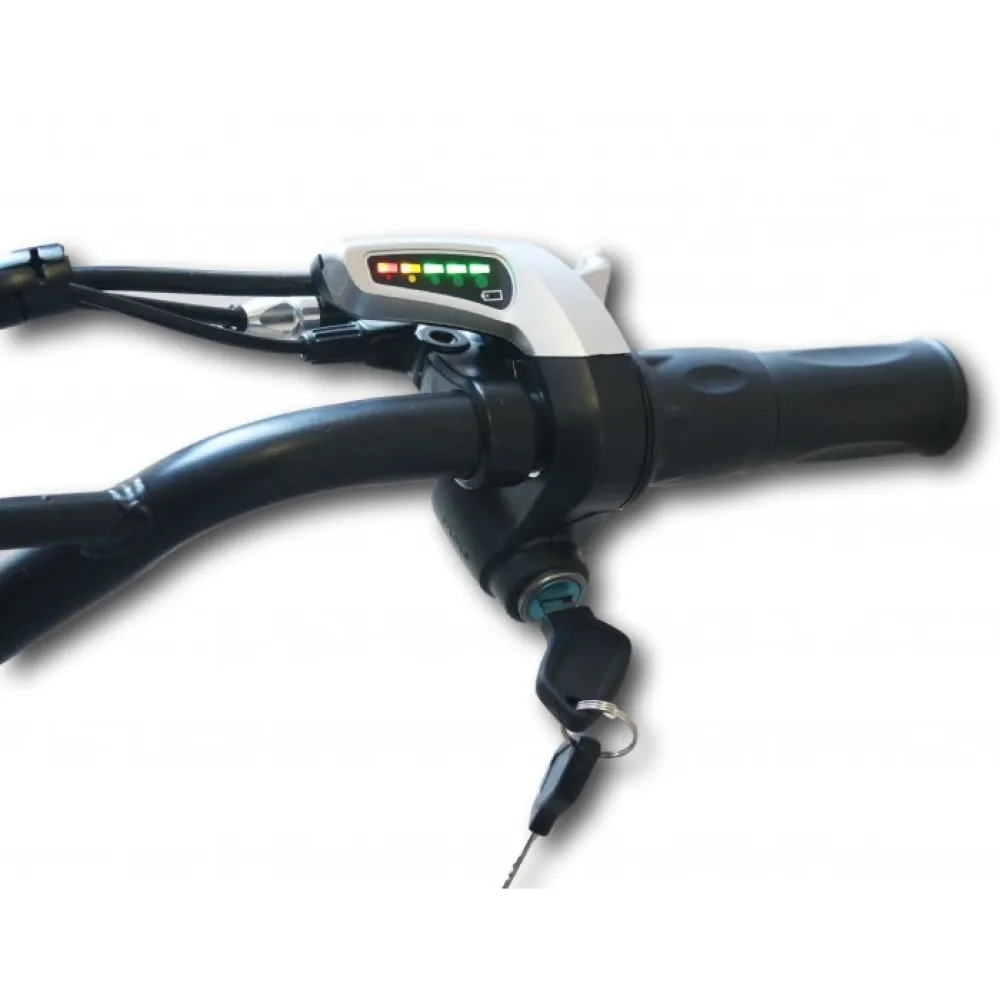 Аккумулятор заряжается 6 часов, его емкость 12 А/ч, до следующей зарядки он проедет 27 км. Световые элементы позволяют передвигаться и ночью.