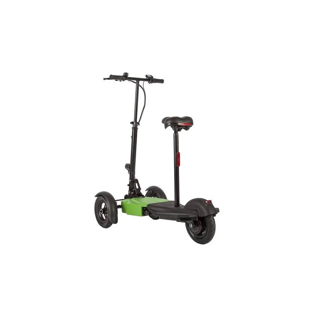 Электросамокат Eltreco Scuddy Light отличается оригинальной конструкцией, ведь производитель оснастил его тремя колёсами - двумя передними и одним задним. За счёт этого самокат более устойчив во время движения и совершения различных манёвров. Надувные 10-дюймовые колеса с глубоким протектором обеспечивают отличное сцепление и компенсируют неровности дорожного покрытия. Это дает возможность передвигаться не только по гладкому асфальту, но и по грунтовым дорогам и даже лесным тропинкам. Габариты самоката позволяют ездить по тротуарам, минуя утомительные автомобильные пробки. Специальный звуковой сигнал предупредит пешеходов о приближающемся транспорте. Данная модель уверенно разгоняется до 25 км\час и способна преодолеть до 25 километров пути на одном заряде батареи. Во время длительной поездки райдер может воспользоваться удобным сиденьем. В темное время суток на помощь придет яркая светодиодная фара. На ряду с задними стоп-сигналами она обеспечивает безопасность движения, делая самокат заметным для других участников дорожного движения. Управление на данной модели настолько интуитивно понятное, что с ним справится даже ребенок. Электросамокат Eltreco Scuddy Light имеет складную конструкцию, благодаря чему его можно легко перевозить в автомобиле или общественном транспорте.