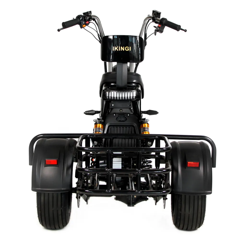 Электроскутер IKINGI X1 PRO TRIKE — это мощное и стильное транспортное средство для городских поездок. С его впечатляющим пробегом на одном заряде до 40-45 км и максимальной скоростью 50-55 км/ч, вы сможете быстро и удобно перемещаться по городу. Мощный двигатель 1000W и емкость аккумулятора 23 Ah обеспечивают продолжительное и надежное использование.Скутер оснащен гидравлическими дисковыми тормозами, которые гарантируют надежное торможение в любых условиях. Задний привод и напряжение 48 В обеспечивают отличную динамику и устойчивость на дороге. Большая передняя фара и стробоскопы повышают видимость и безопасность в темное время суток.Передние и задние амортизаторы делают поездку максимально комфортной, сглаживая неровности дороги. Формат скутера CityCoco с большой платформой для ног, внутри которой находится аккумулятор, обеспечивает устойчивость и удобство. IKINGI X1 PRO TRIKE — это идеальный выбор для тех, кто ценит сочетание мощности, стиля и комфорта в одном электроскутере.