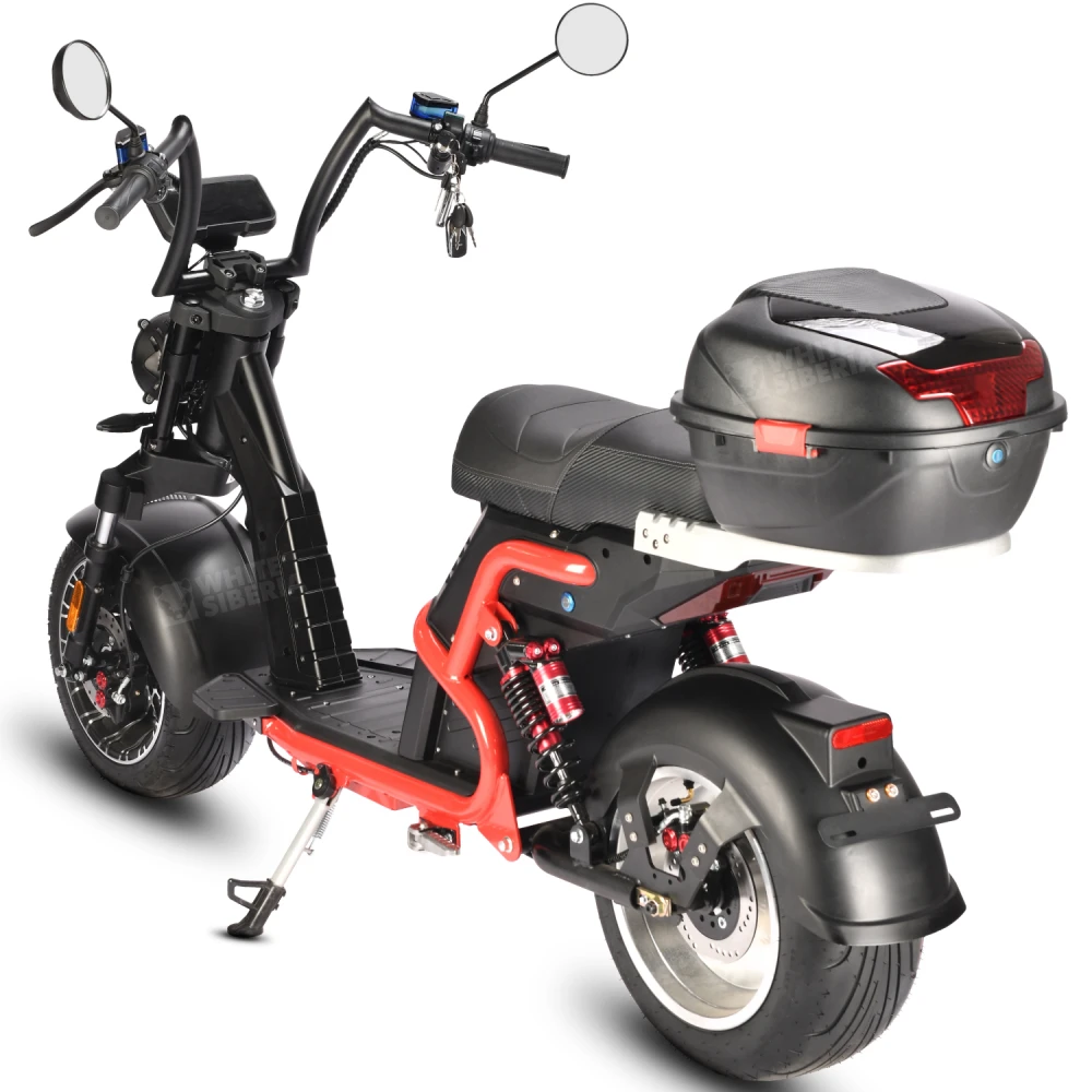 Электроскутер CityCoco WHITE SIBERIA PRO BLACK EDITION 5000W - это современный транспорт от мирового производителя WHITE SIBERIA, который создан для комфортной езды по городу. Электроскутер WHITE SIBERIA PRO BLACK EDITION 5000W, отличается стильным дизайном и отличными техническими характеристиками. PRO BLACK EDITION оснащена подвеской мотоциклетной, которую водитель может настроить под себя. Стальная рама защищает подвеску от повреждения и попадания грязи. Электроскутер white edition 5000w оснащен мощной, съемной, электрической батареей Li-Ion 60V 31Ah. LED фара обеспечивает модели black edition безопасную и комфортную езду в темное время суток. Электроскутеры edition 5000w отличаются большим, мягким сиденьем, местом для крепления корзин и кармашком для хранения документов. Мощное мотор колесо 5000W позволяет развивать скорость до 85 км\ч. Бортовой компьютер с большим дисплеем установлен на электроскутер этой модели. На нем во время поездки видны все показатели движения. В нашем магазине представлена и другая продукция от производителя WHITE SIBERIA. Купить электроскутер WHITE SIBERIA PRO BLACK EDITION 5000W по выгодной цене с доставкой и аксессуары к вашему электроскутеру вы сможете на нашем официальном сайте интернет-магазина.