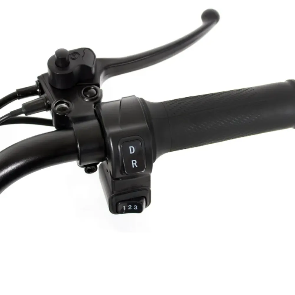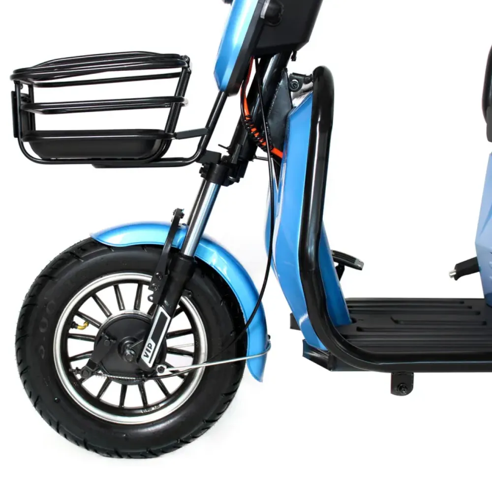 Модель выделяется наличием трёх режимов езды плюс заднего хода, полной светотехникой с поворотниками и звуковым сигналом — редкое сочетание для электротрициклов в этом сегменте. Ориентирована на использование в городских условиях и лёгком бездорожье.