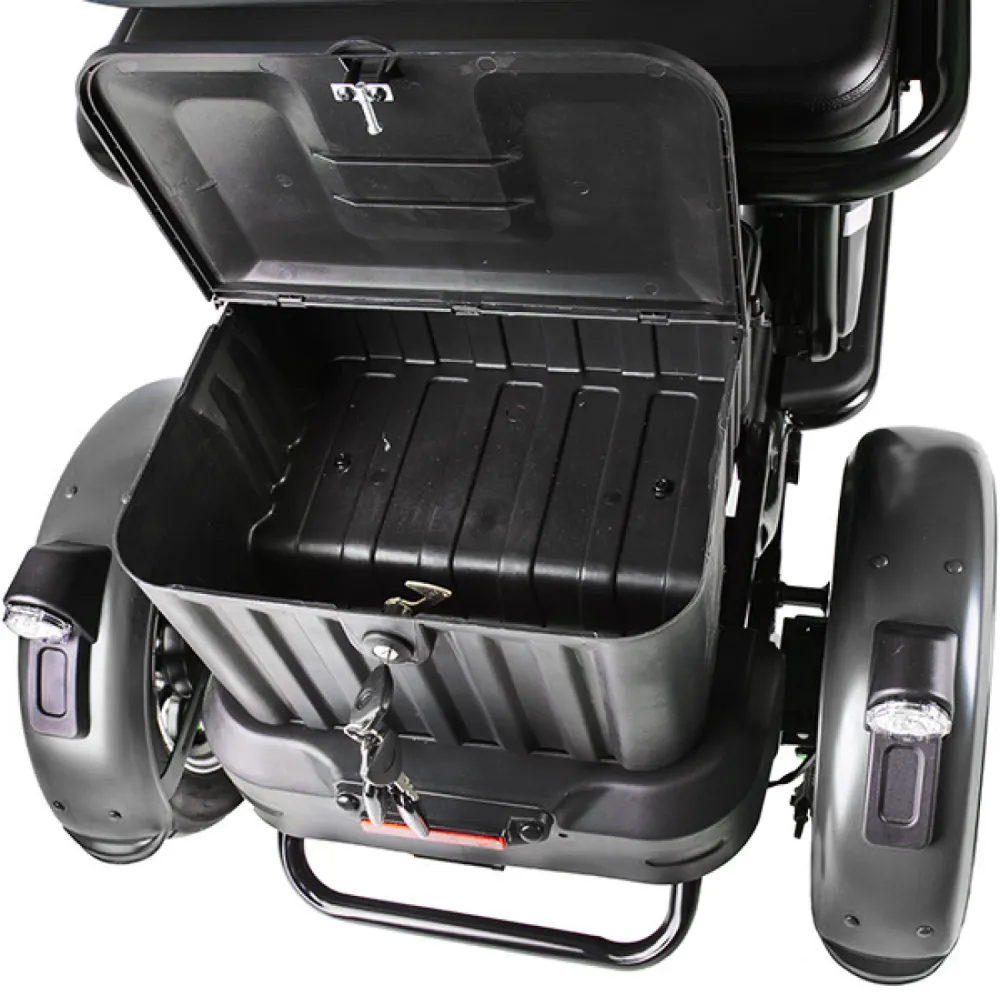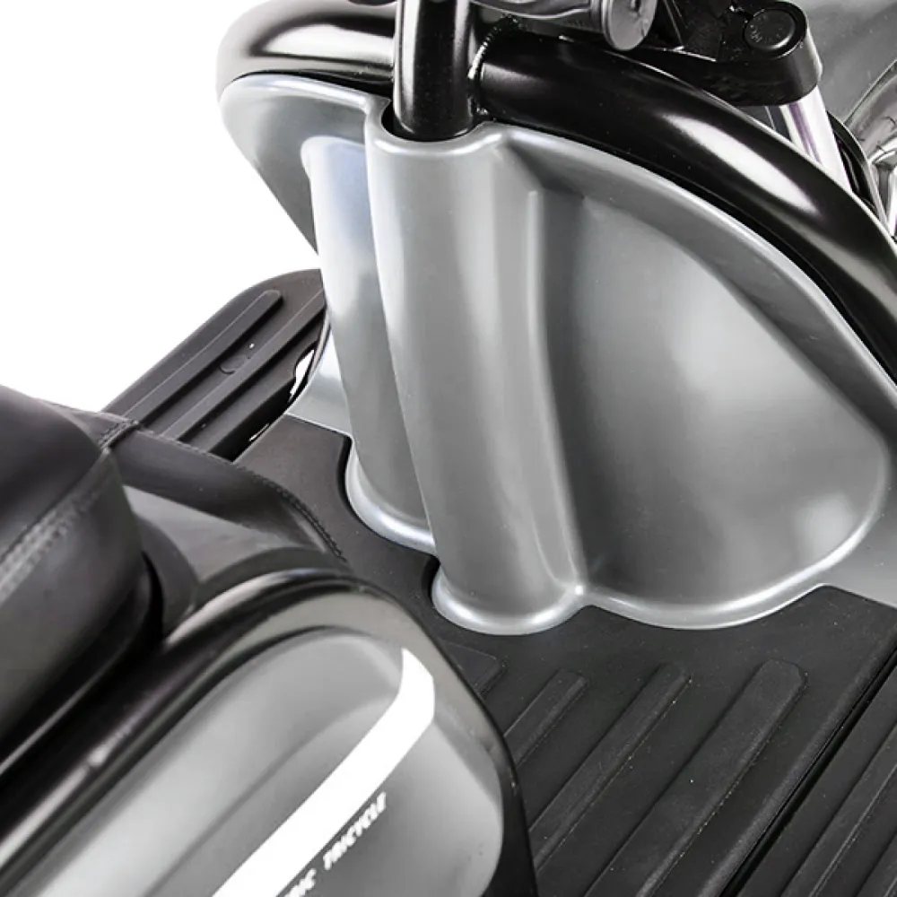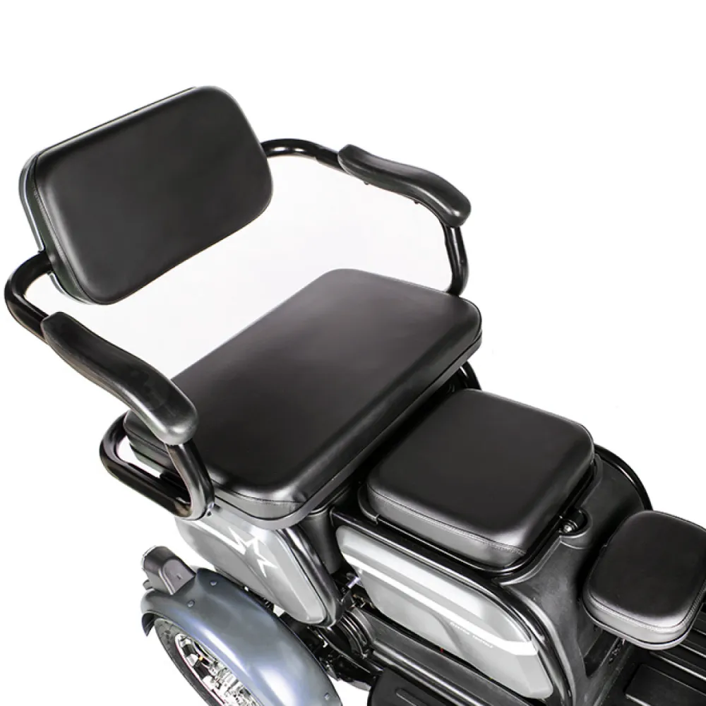 Электротрицикл Rutrike Пилот серый – практичная модель для активного время провождения в кругу друзей и семьи. Выглядит современно и привлекательно. Купить трицикл по разумной стоимости, без привлечения перекупщиков предлагает наш интернет-магазин. Техника оснащена мощным электродвижком на 650 Вт, допускает использование 1 из двух АКБ: на 20 и 32 А*ч. Надувные внедорожные 8-дюймовые колеса отлично сцепляются с поверхностью, развивают безопасную скорость до 25 км/час. При этом максимальный пробег без дополнительной подзарядки составляет 30 км, достаточный для отдыха на природе. Модель комфортная и удобная благодаря 3 сиденьям: основным креслом с удобной анатомической спинкой, дополнительным сиденьем и детским. Последнее расположено перед водителем, позволяет держать под контролем ребенка, исключить непредвиденные ситуации в дороге. Кроме частного использования техника доказала эффективность при эксплуатации в туристическом бизнесе. Оснащенность задней подвески пружиной и барабанной тормозной системой обещает плавность езды по проблематичной местности и своевременность торможения. Надеемся, вы остались в восторге от трицикла. Приглашаем приступить к оформлению заказа.