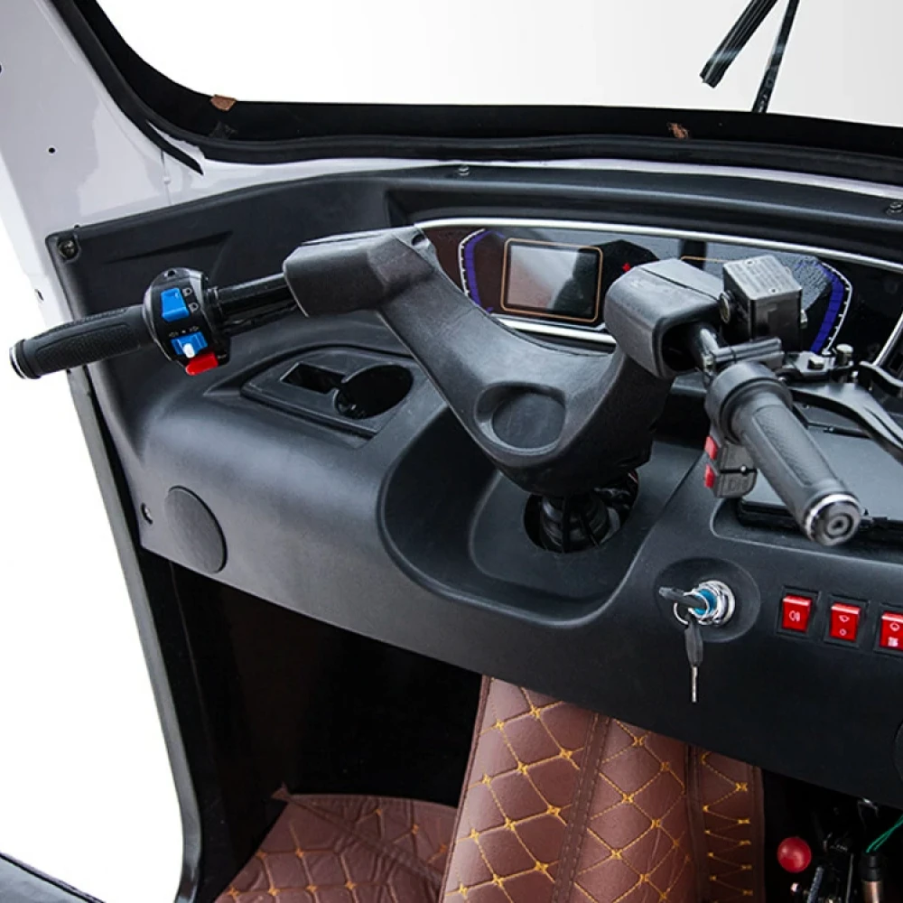 Трицикл Rutrike Рикша NEW 60V1800W красный – яркая привлекательная техника считается необходимостью для частного бизнеса и лиц с приусадебным хозяйством. Грузоподъемность до 600 кг позволяет безопасно перевозить грузы гарантировать их сохранность и целостность. Модель оснащена крышей, надежно защищена от негативного воздействия погодных факторов. Купить технику по демократичной стоимости быстро воспользоваться бесплатной консультационной поддержкой предлагает наш интернет-магазин. Трицикл оснащен 3 устойчивыми колесами параметрами 3,50-R12, надежно сцепляемыми с разными видами грунта. Угол наклона составляет 9 градусов. Техника оборудована электромотором на 1000 Вт и емкой батареей, благодаря которым ездок может развить скорость до 25 км/час и преодолеть без дополнительной подзарядки расстояние до 80 км. Передняя подвеска оснащена усиленными гидравлическими амортизаторами. Задняя подвеска дополнена пружинами и рессорами. Характеристики обеспечивают плавность хода, исключают вибрации. Если вас заинтересовал трицикл, предлагаем сделать телефонный звонок нашему менеджеру. Мы поможет оформить заказ, проконсультируем по техническим параметрам, ознакомим с необходимо документацией. Наша техника лучшая в своем сегменте. качество подтверждено многочисленными отзывами пользователей.