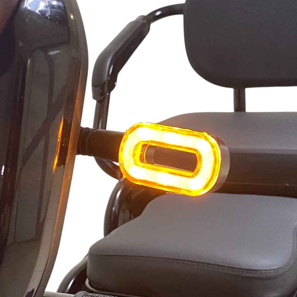 Передние и задние фары, звуковой сигнал и устойчивость трёхколёсной конструкции повышают безопасность в городе. Дисковые тормоза  (предположительно) обеспечивают эффективное замедление.