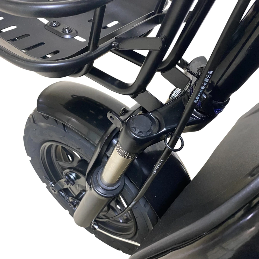 Мотор 800 Вт на заднем приводе обеспечивает скорость до 40 км/ч и уверенное движение по городу и ровному грунту. На подъёмах скорость снижается, но для повседневных маршрутов мощность достаточна при правильном распределении нагрузки.