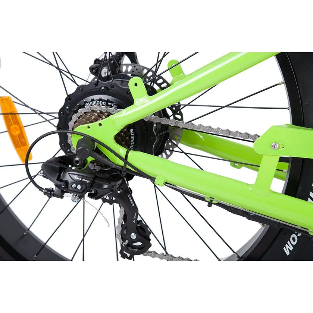 Электродвигатель имеет мощность 350 Вт, это позволяет передвигаться на дальние расстояния, не используя собственных сил. Максимальная скорость, развиваемая транспортным средством, составляет 25 км/ч. Есть возможность подобрать комфортный скоростной режим, у велосипеда есть 7 скоростей. Тормозная система дисковая.
