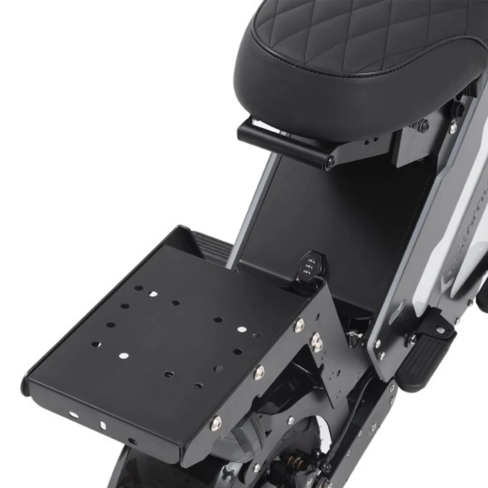 Скутер выдерживает до 150 кг нагрузки, так что он легко подстроится под твою езду. А сиденье и подножка обеспечивают комфорт в любых условиях.