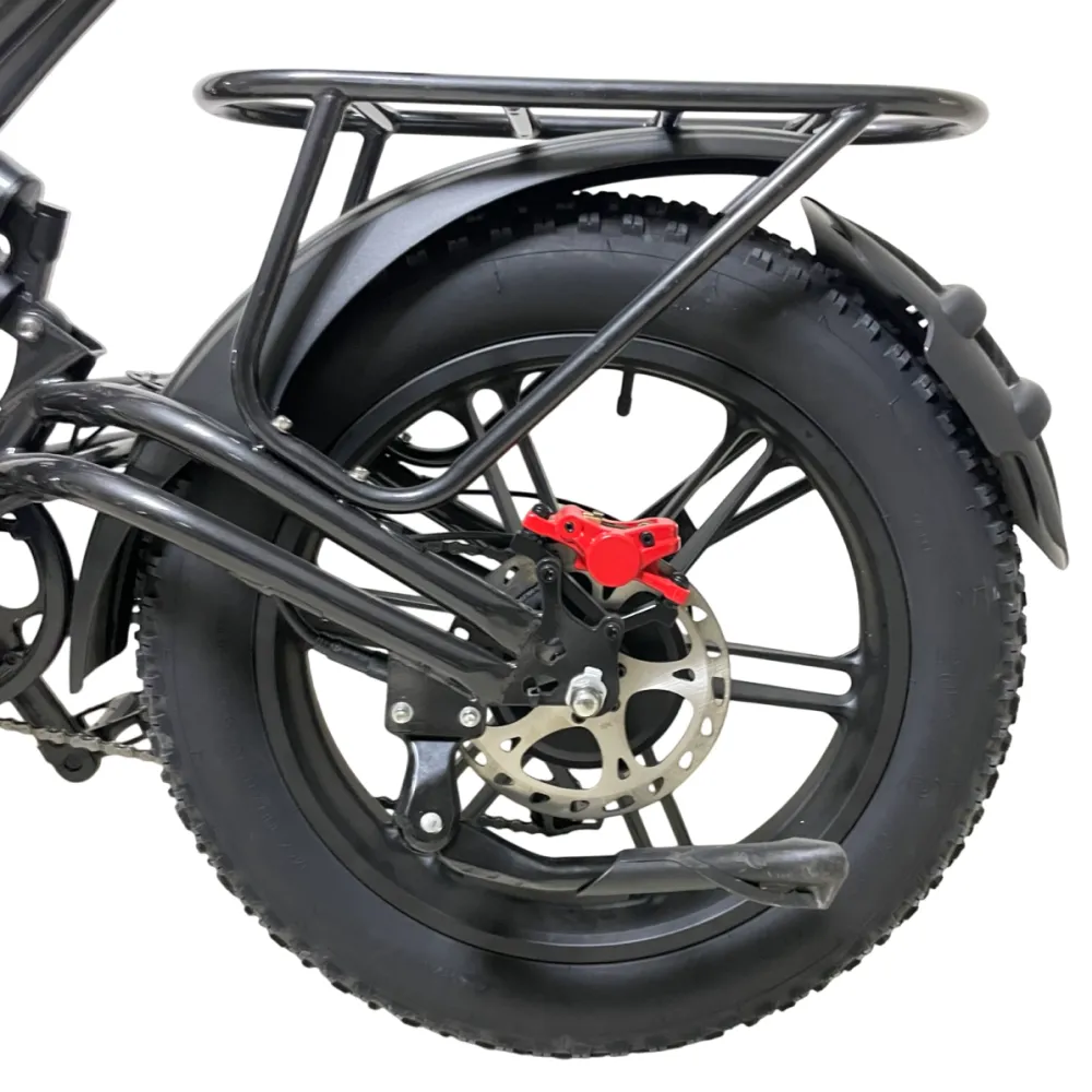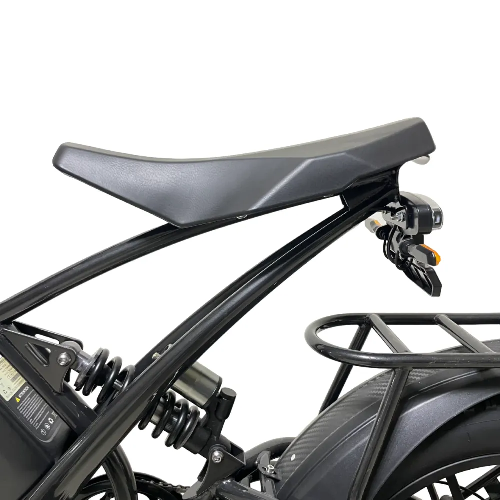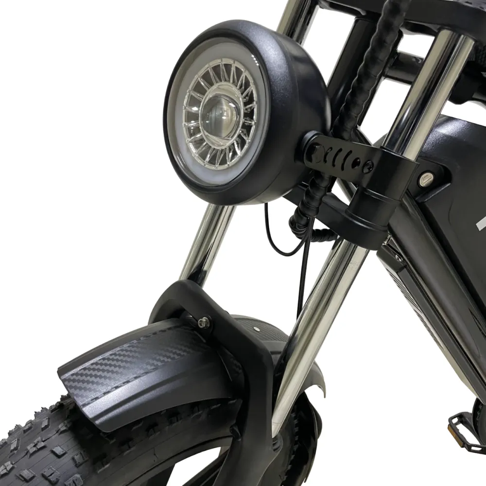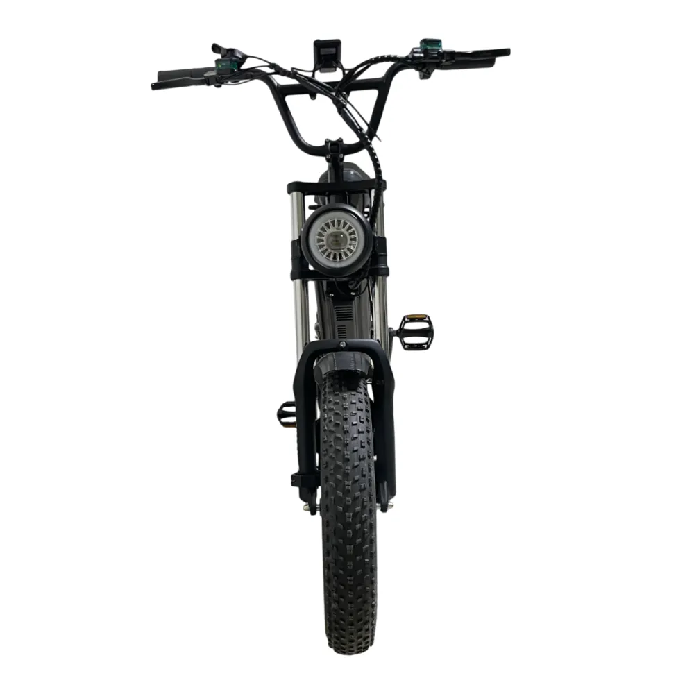 Электровелосипед Minako FOX 15Ah (Литые) в черном цвете – супербайк по лучшей стоимости предлагает купить наш интернет-магазин. Модель относится к категории быстро распродаваемой. Внешне напоминает мопед. Выглядит круто и презентабельно. Предназначен для активных пользователей, не представляющих жизни без экстрима. Прочная надежная рама, фирменная начинка обещает скоростную комфортную езду. Удобное комфортабельное седло исключает нагрузку на позвоночник, появление ощущения усталости. При мощности электромотора 1000 Вт максимальные скоростные параметры составляют 55 км/час. Емкости аккумулятора (15000мАч) достаточно для преодоления дистанции – 30 км). Батарея размещена в защитном блоке, исключающим внешнее повреждение устройства. 20-дюймовые колеса с 4-дюймовыми шинами выглядят агрессивно, накатистые, отлично сцепляемые с разными вилами поверхности. Безопасность эксплуатации гарантирована большой светодиодной фарой, фирменными тормозами и наличием бортового компьютера. Последний предоставляет полезную для райдера информацию: скоростные параметры и степень зарядки батареи. На электровелосипеде безопасно ездить по ровной дороге и пересеченной местности, в непогоду и любе время суток. Для заказа техники предлагаем сделать заявку сейчас или позвонить менеджеру.