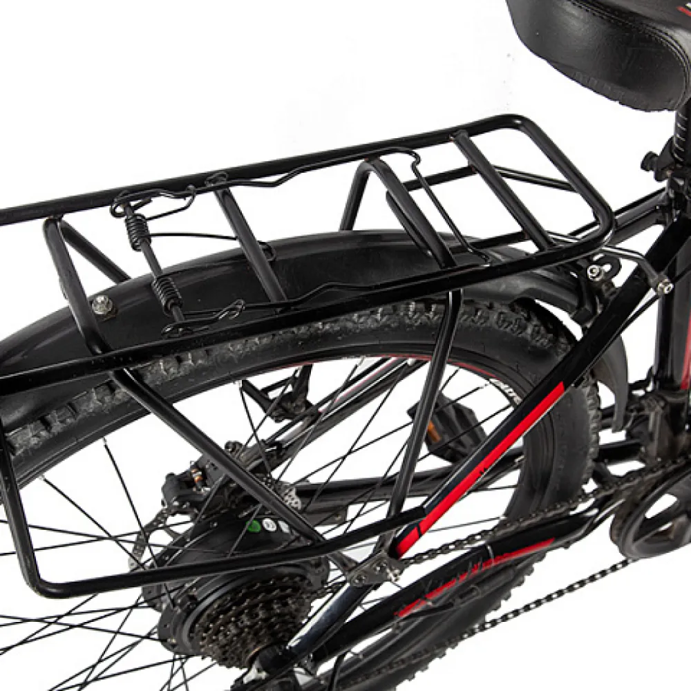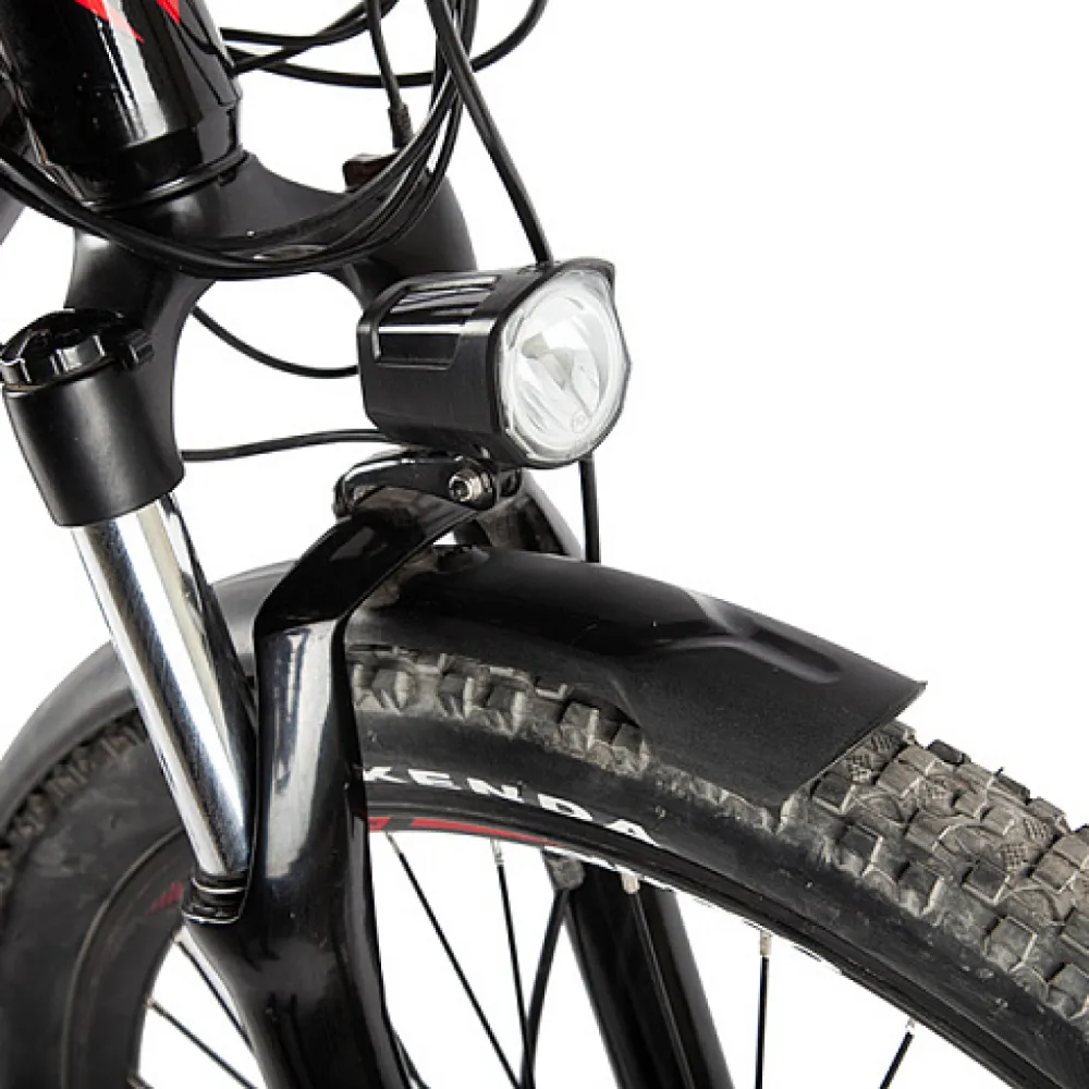 Модель укомплектована усиленной амортизационной алюминиевой вилкой, данная конструкция способна выдерживать до 110 кг. Вес самого гибрида 21 кг.