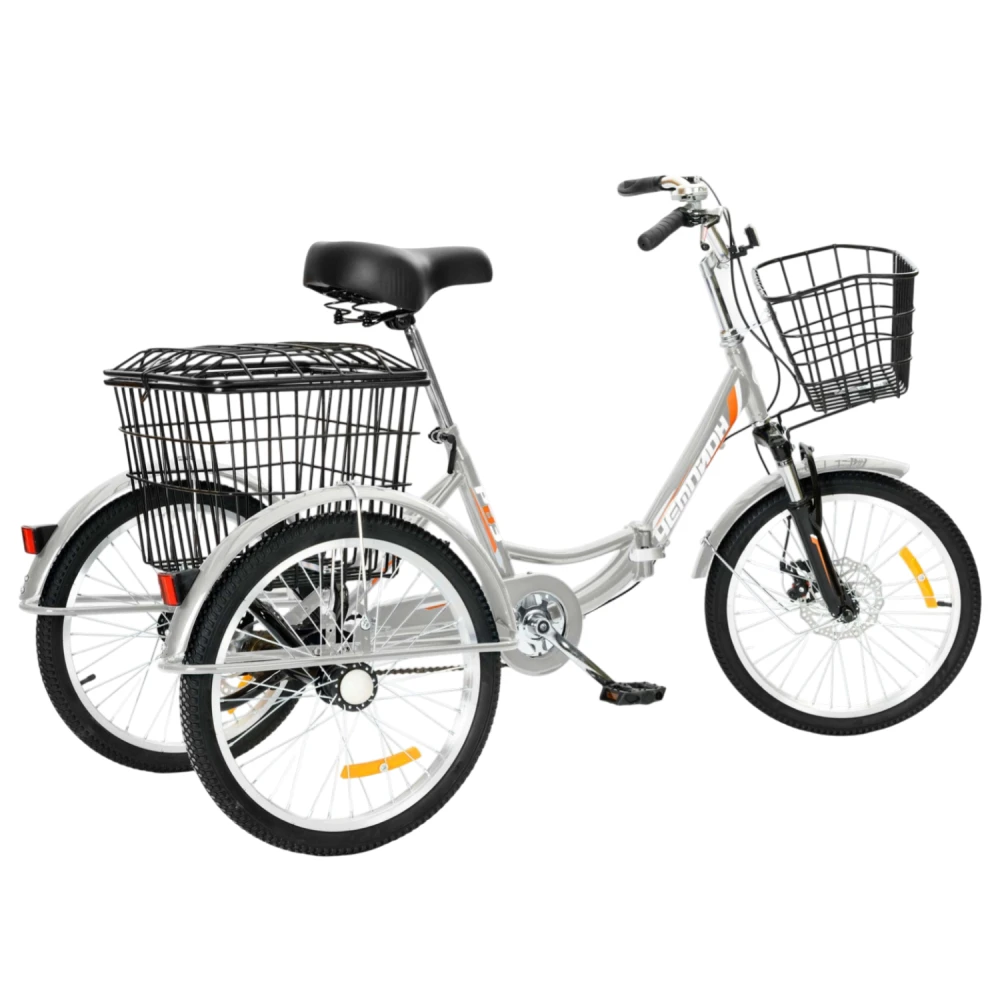 Трехколесный велосипед для взрослых РВЗ Чемпион 20" 1 скорость (складной) серебристый